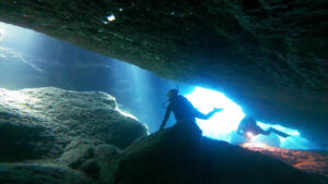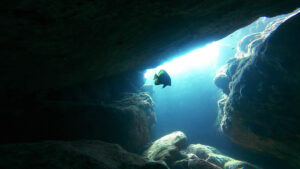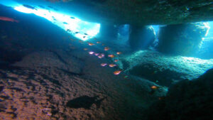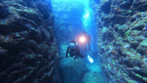 3ダイブ目は地形のポイントで、差し込む光のシャワーを浴びで、