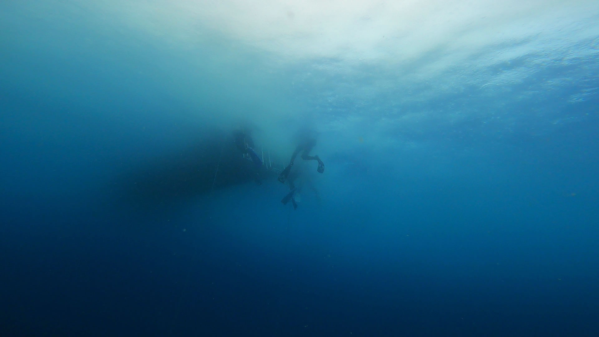 そして・・・水面はとても濁りだし、えきじっ途中のダイバーは上半身が見えなくなりました!