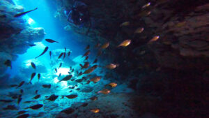 3ダイブは少しうねりがありましたが、地形のポイントへエントリーです!