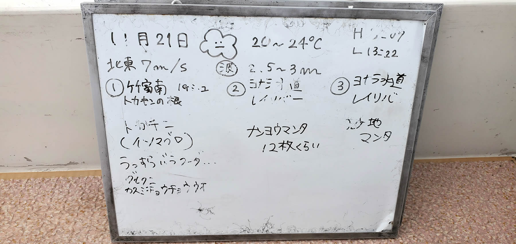天候:晴れ時々曇り 気温:24℃ 水温:27℃ 透明度: