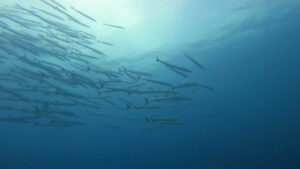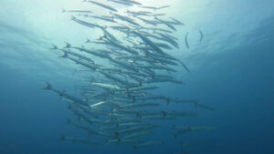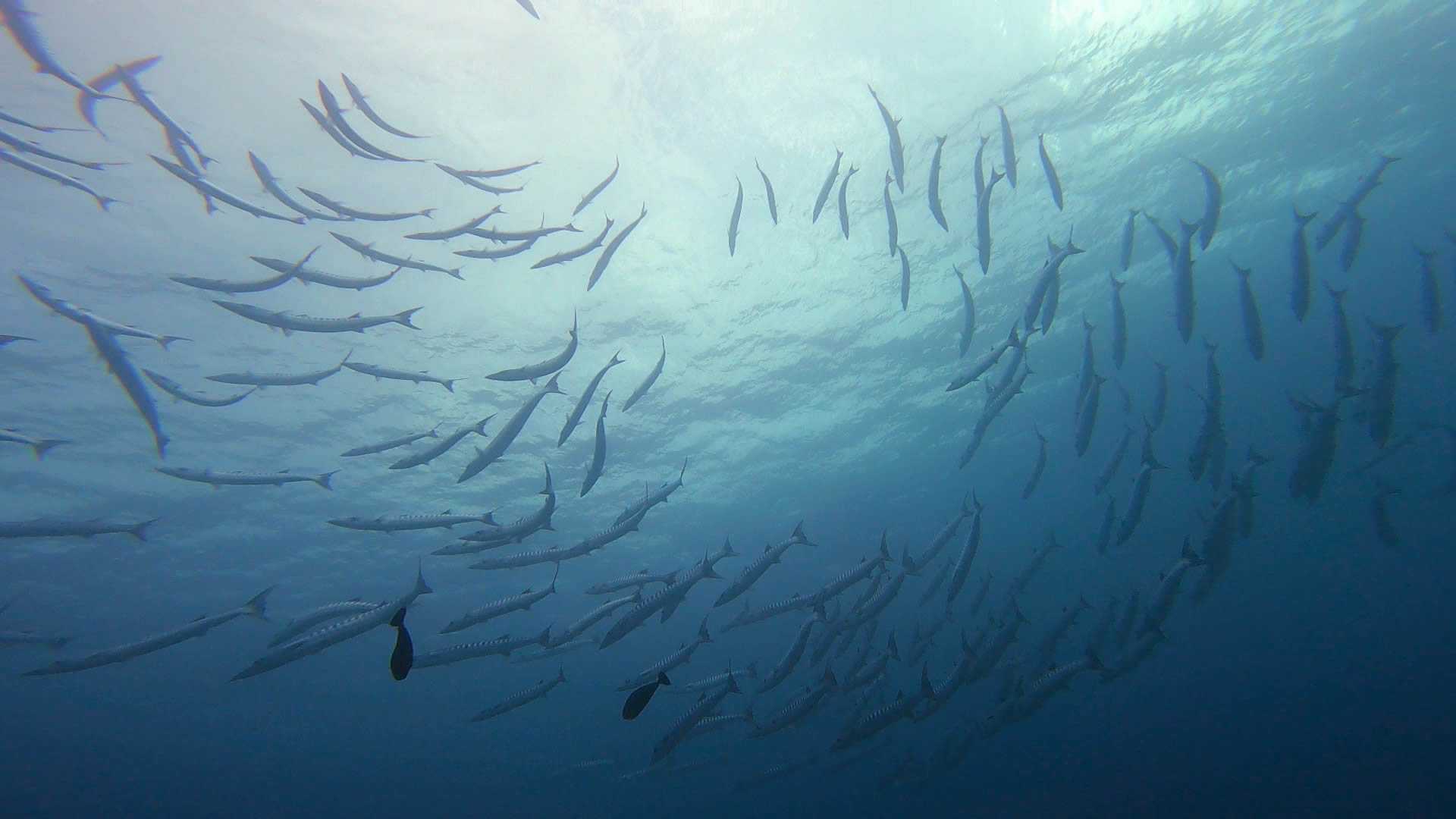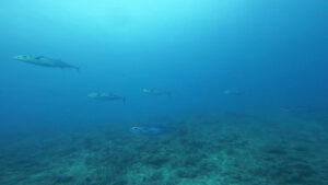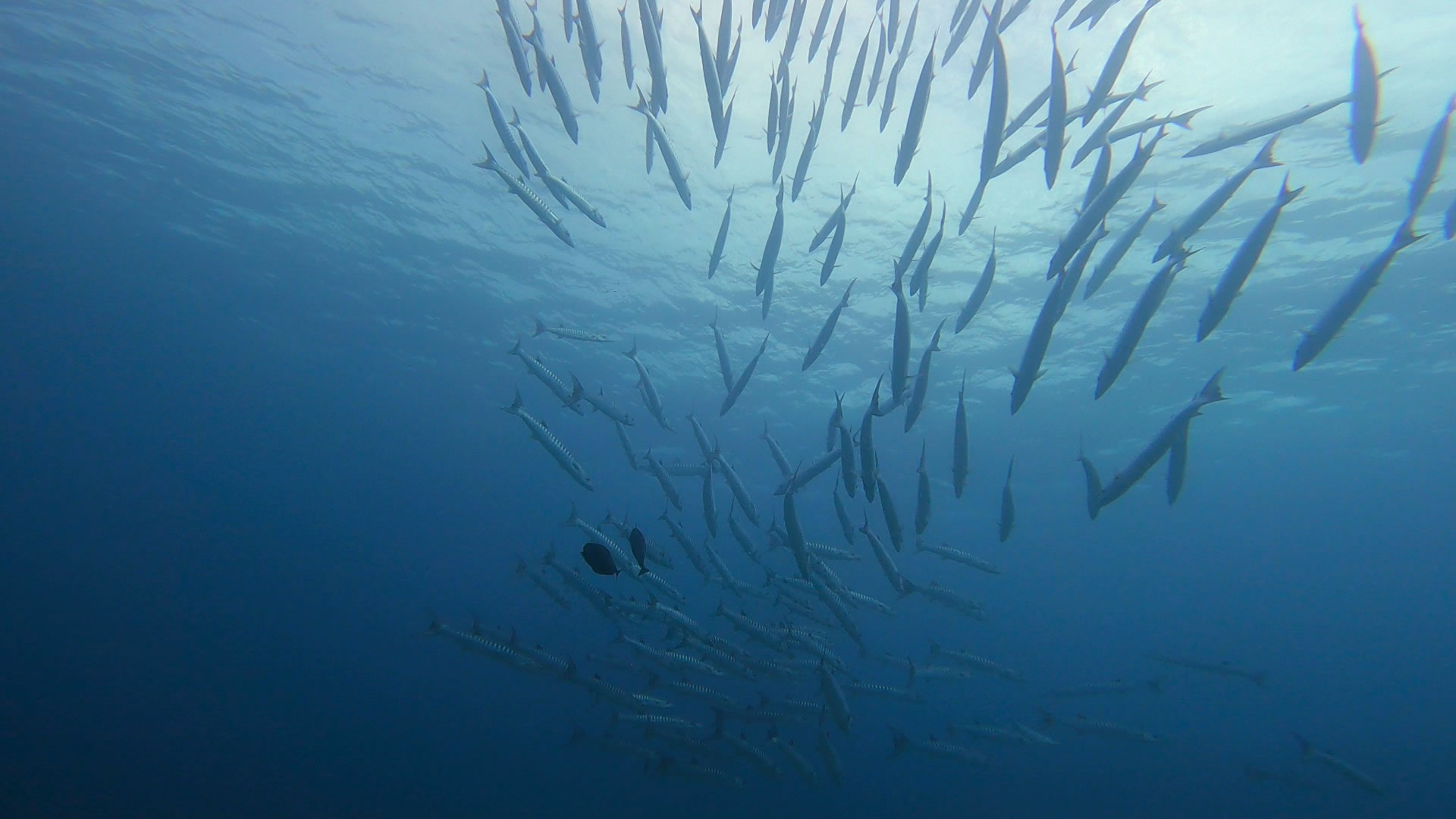 マダラトビエイ&イソマグロ10匹程&ブラックフィンバラクーダの群れを、