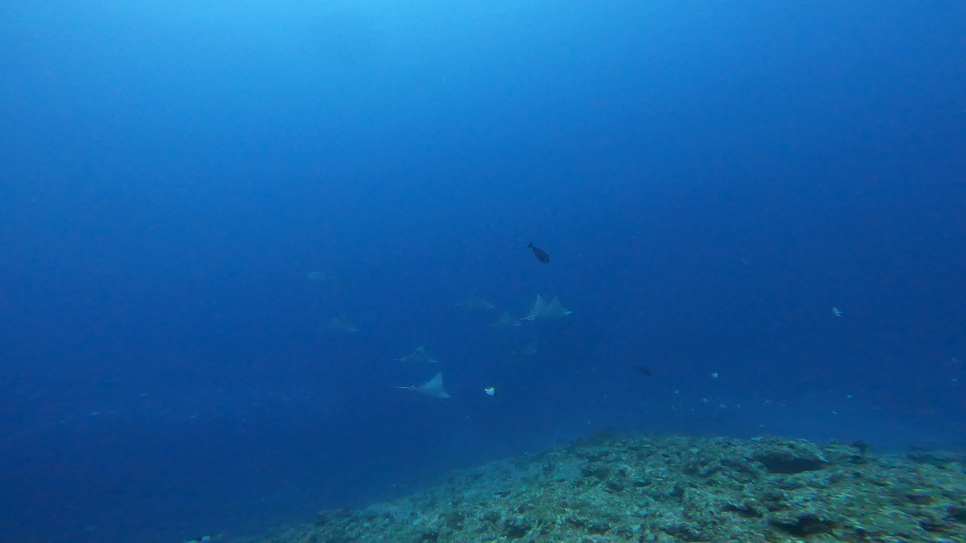 エントリー早々・・・ギンガメアジの群れ&イソマグロの群れ&マダラトビエイ7匹が、