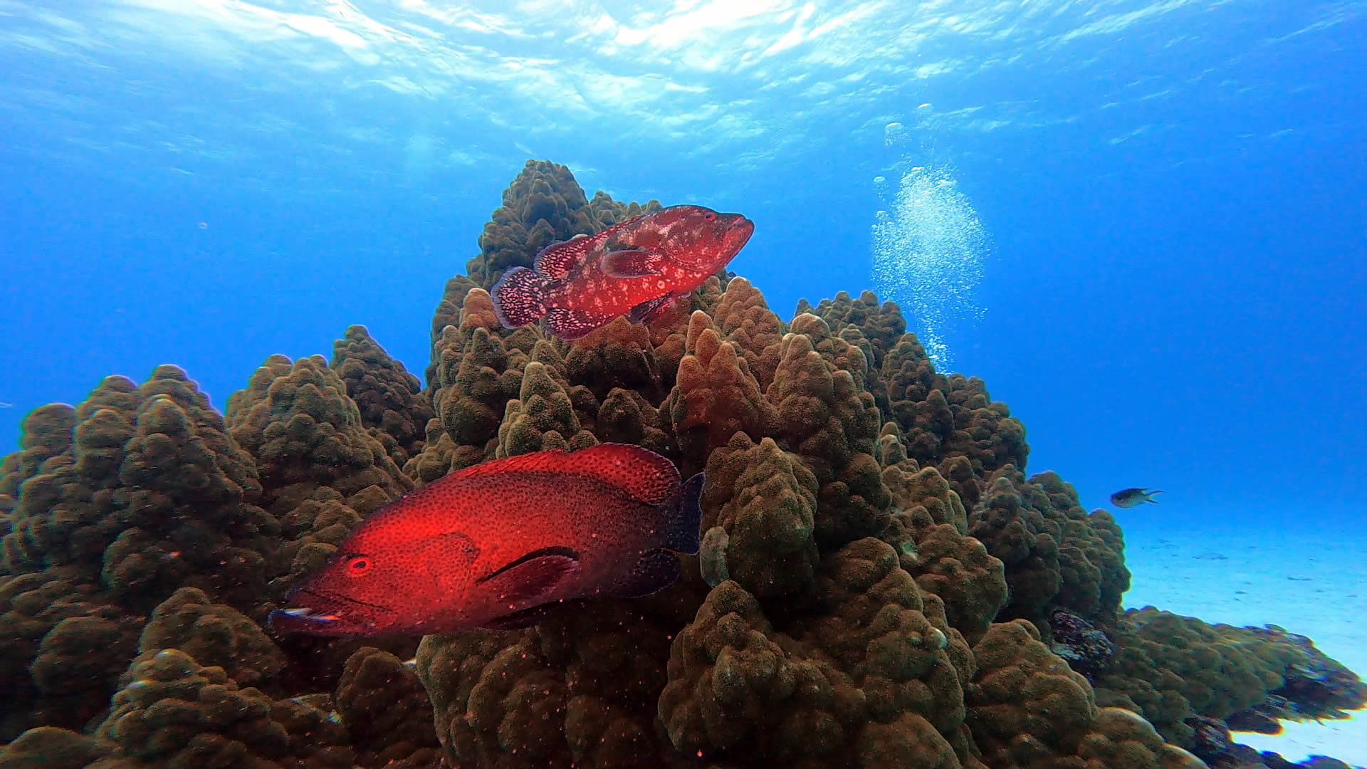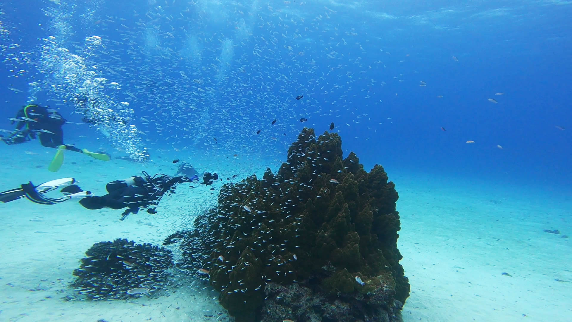 マンタは・・・少しだけ見ることが出来ましたが、水面でスノーケラーに追われており、
