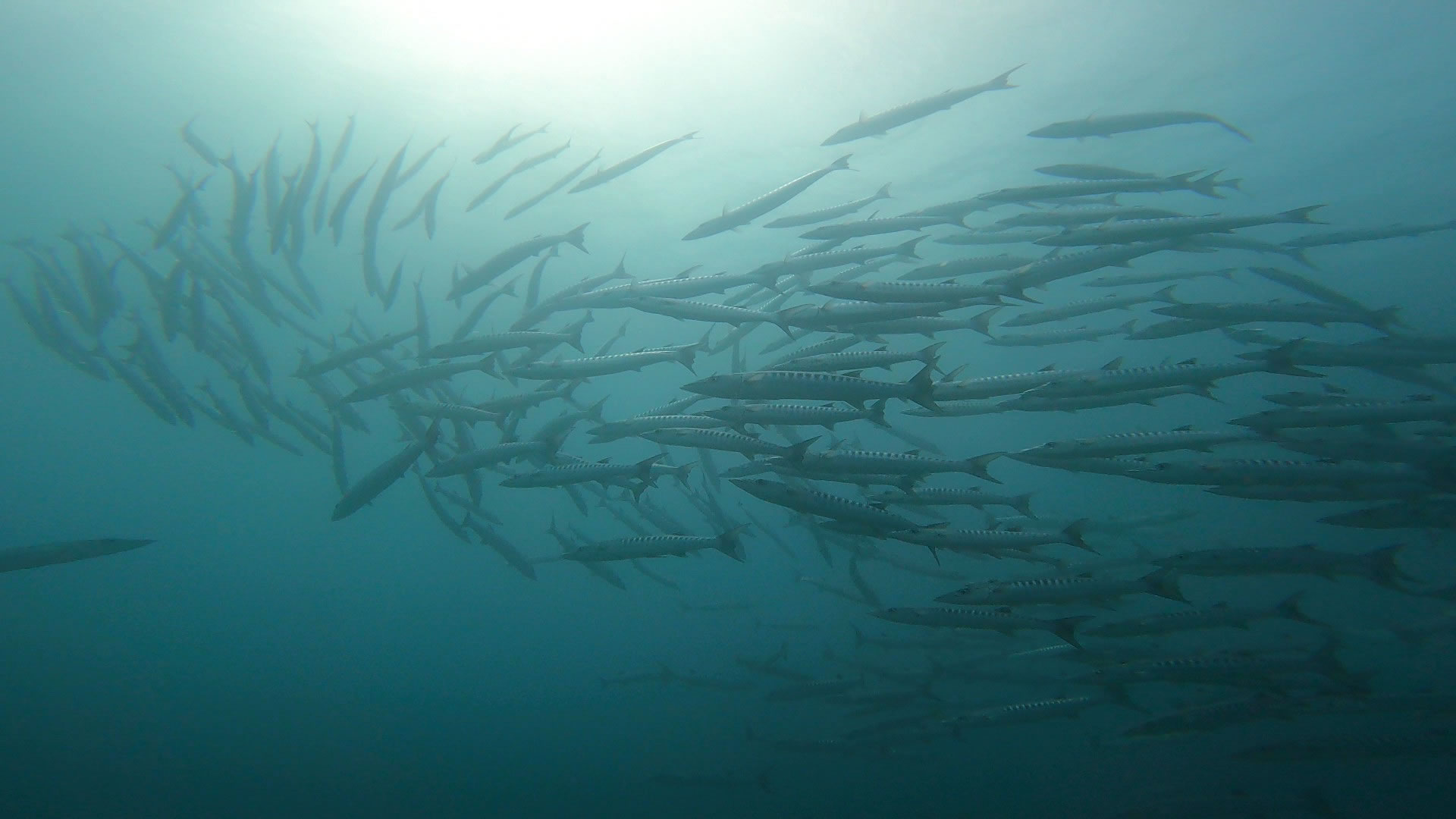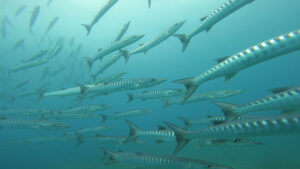 ブラックフィンバラクーダの群れは超接近でしたので、