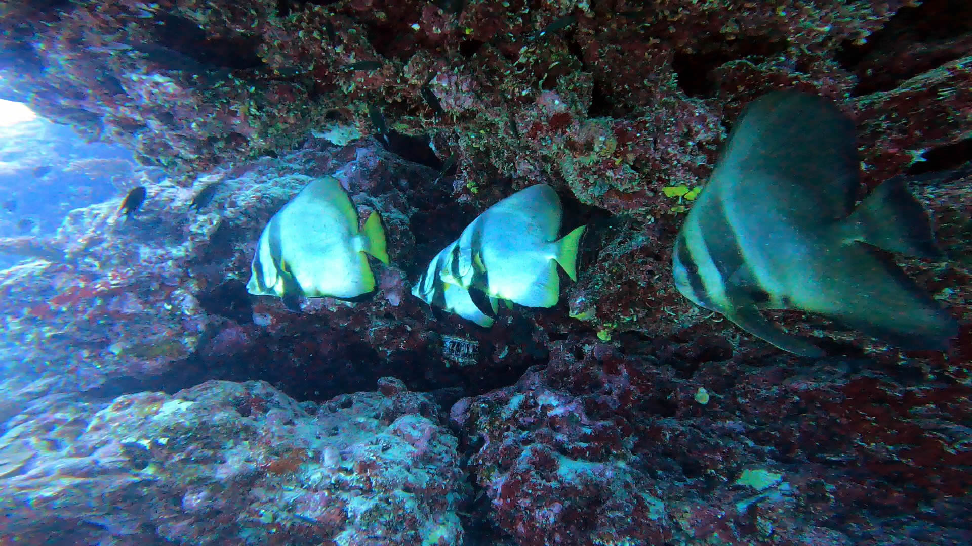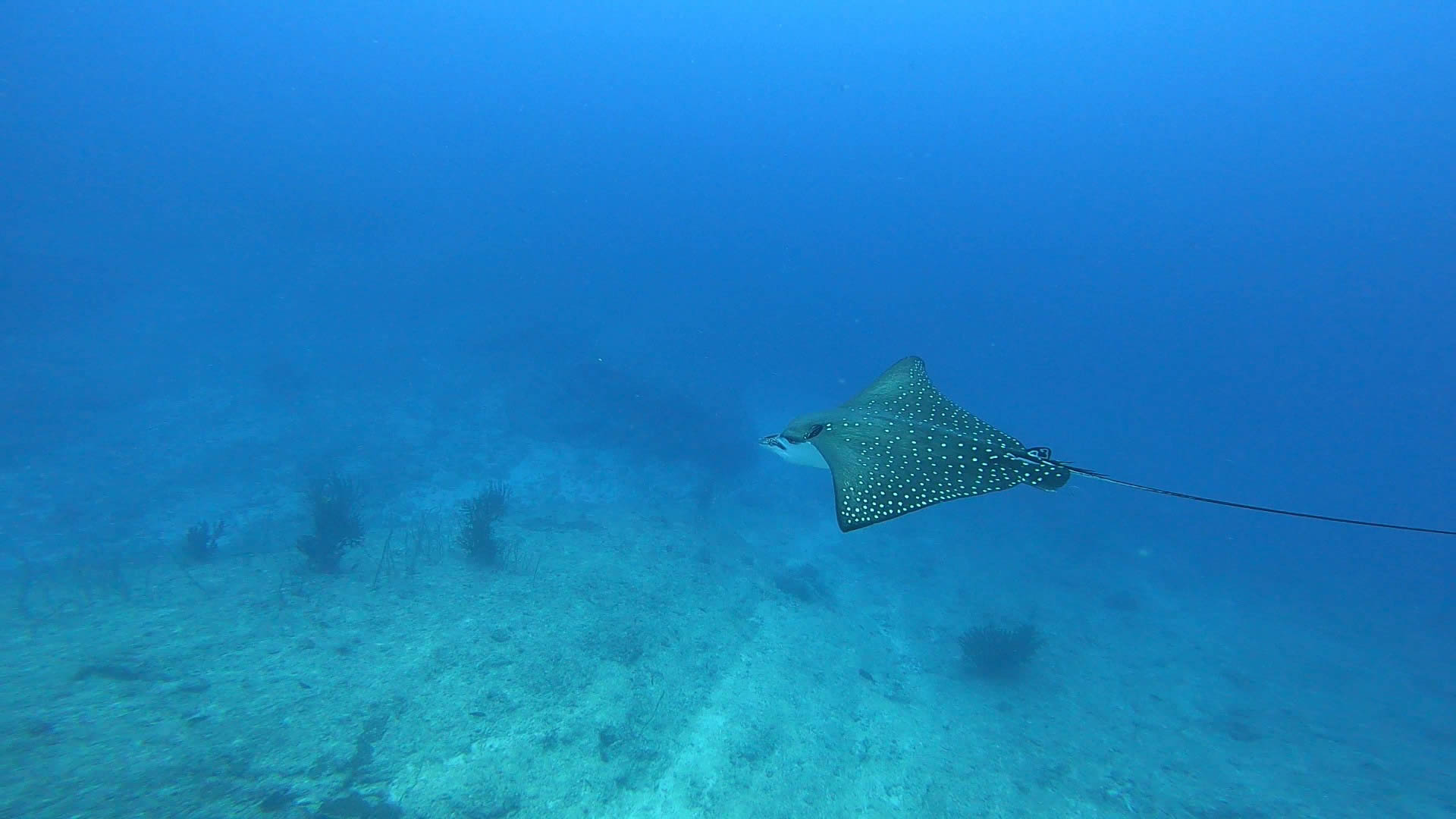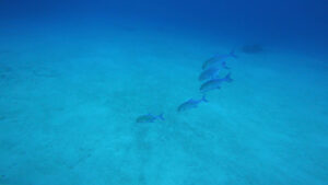 まずは、イソマグロが登場!続いてマダラトビエイが登場!〆はブラックフィンバラクーダの群れ!