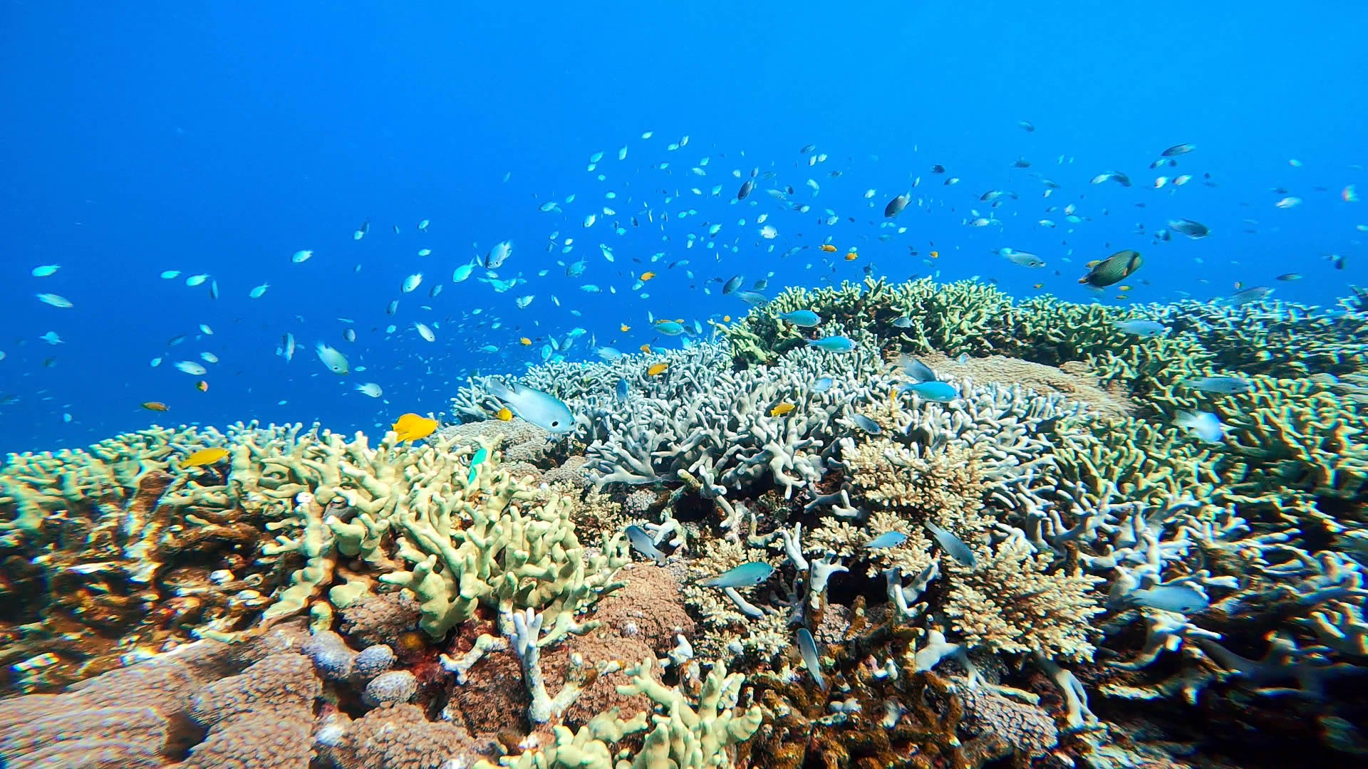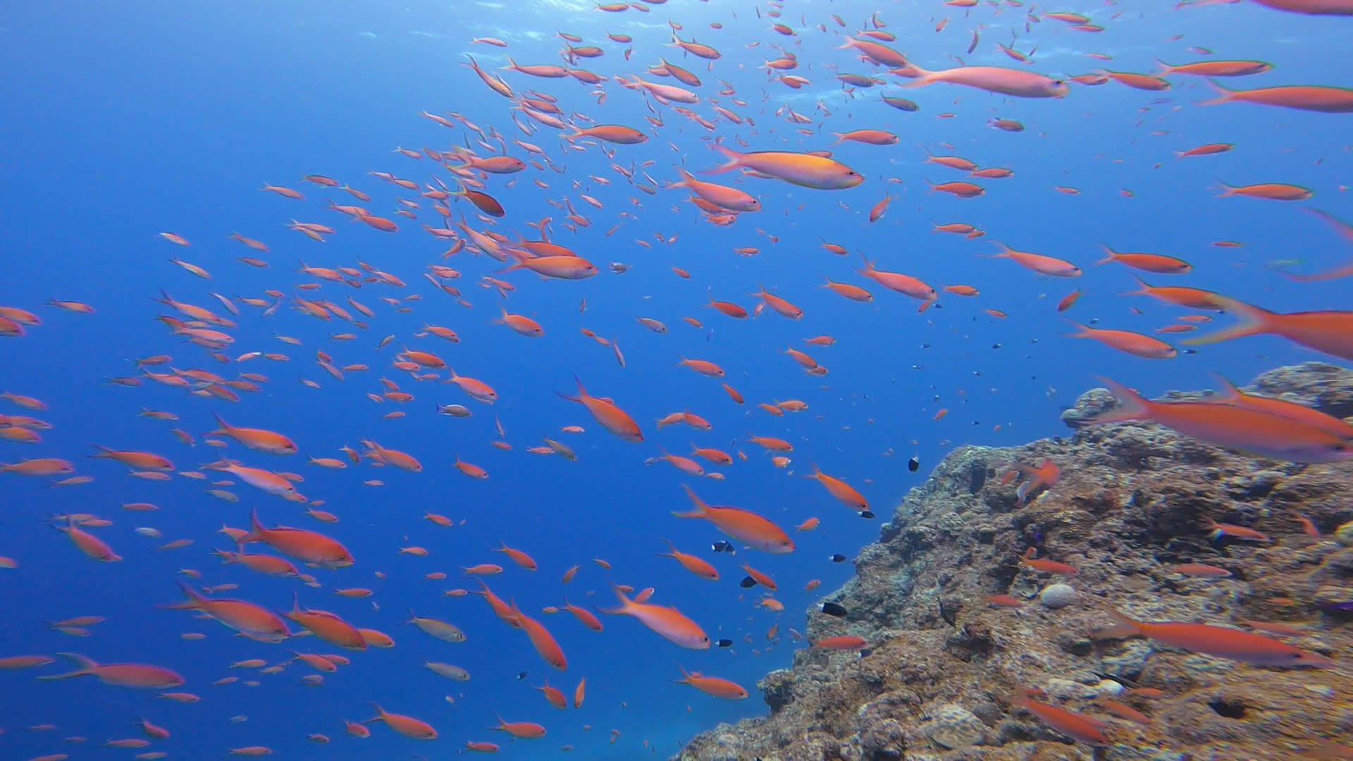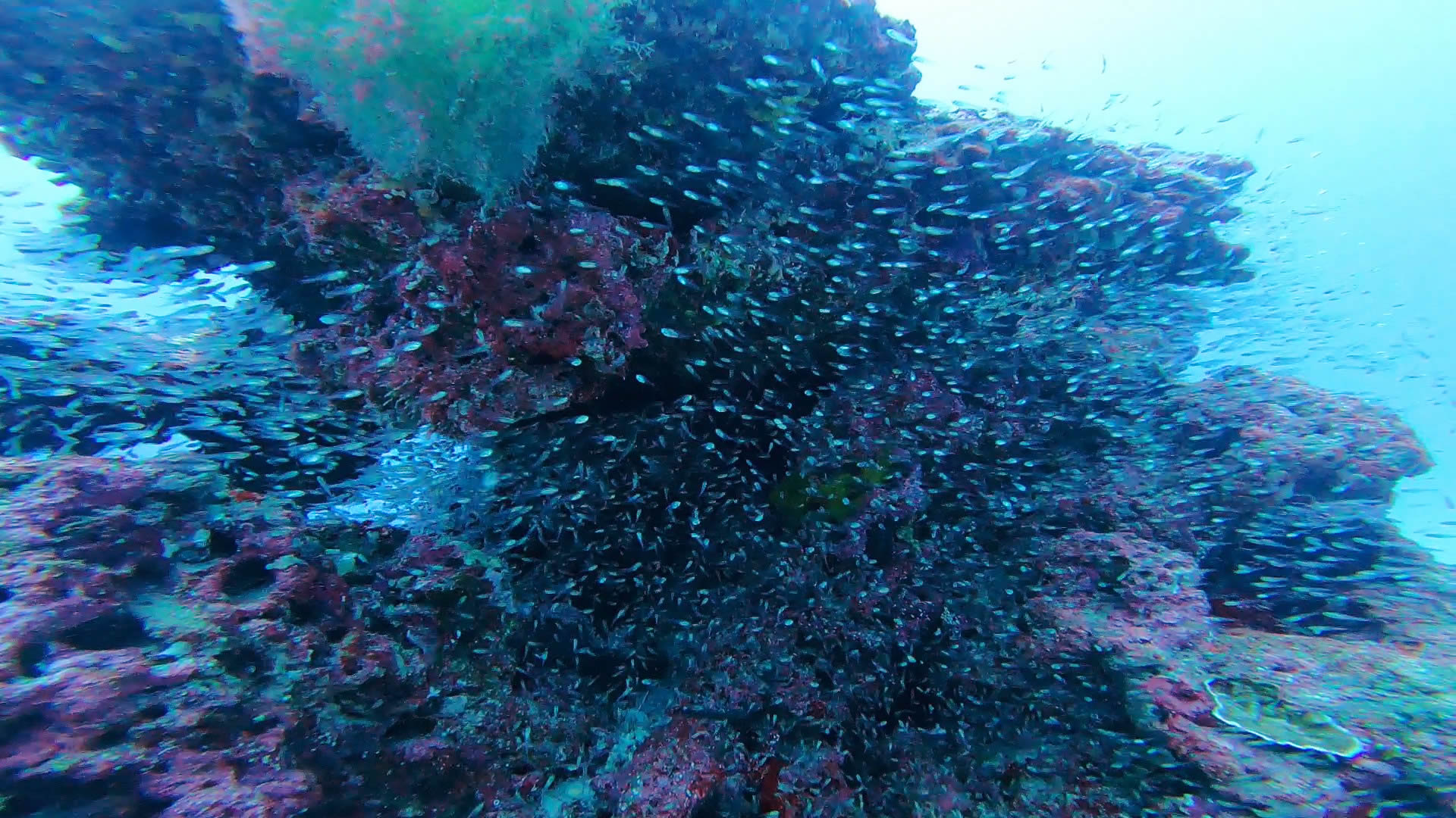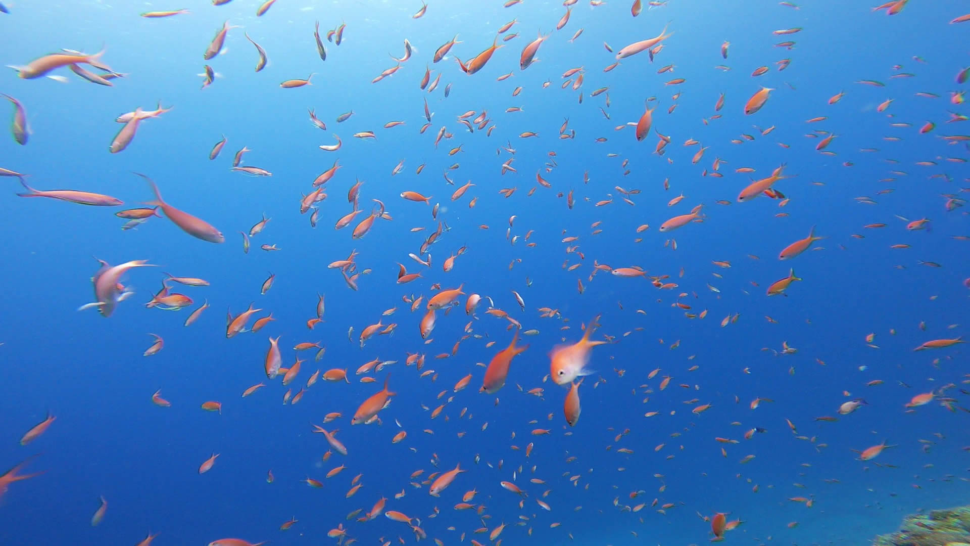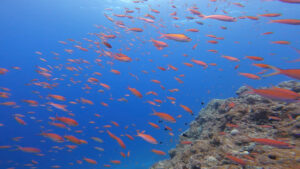 テンジクダイは少なめでしたが、カラフルなサンゴにスズメダイ各種が群れ!