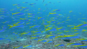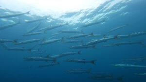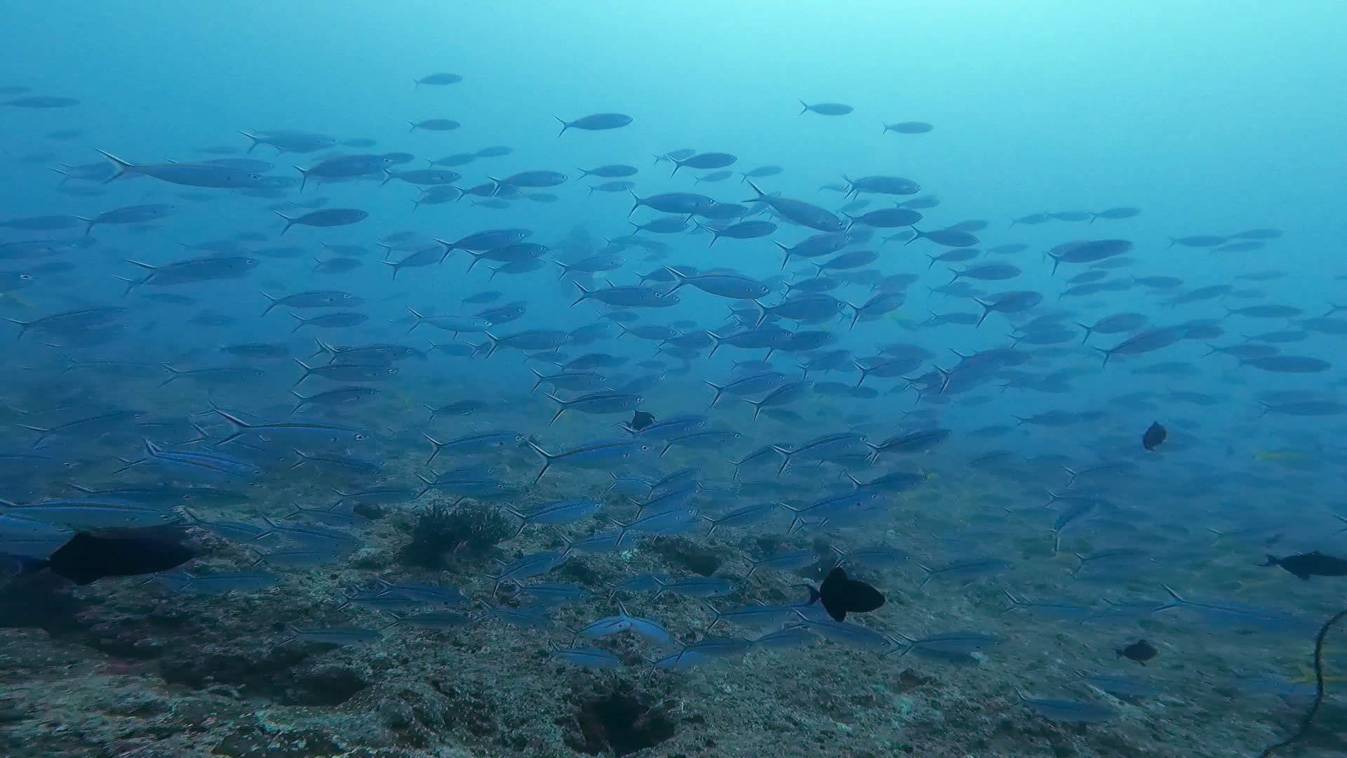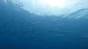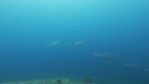 透明度が悪い中・・・ギンガメアジの群れとオオメカマスの群れを見てきました!