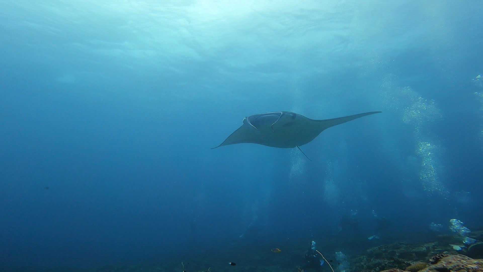エキジット間際から1匹のマンタがホバーリングを始め!