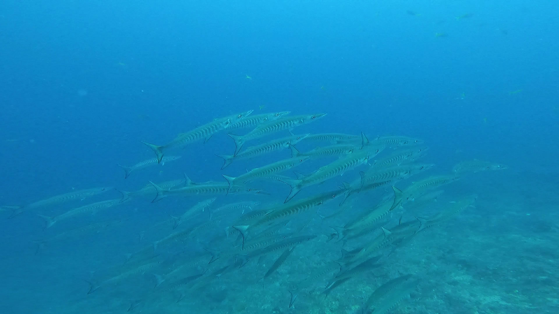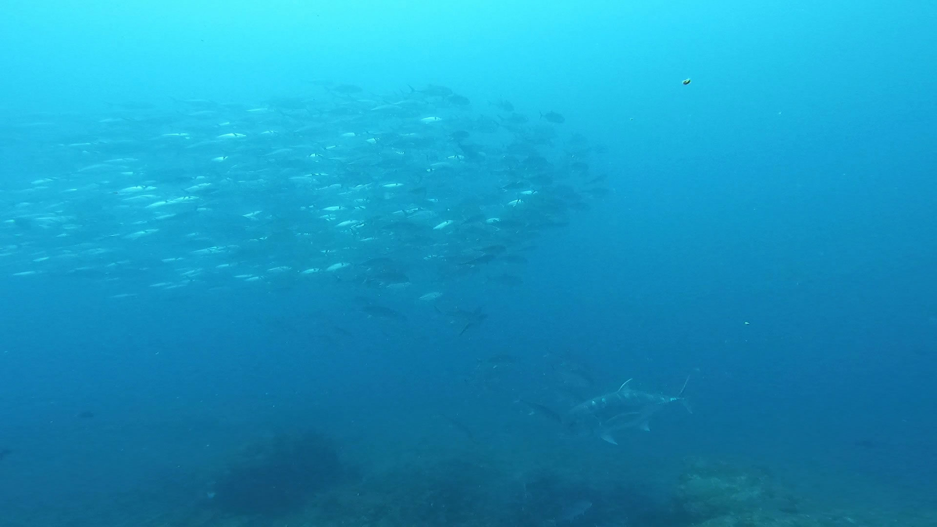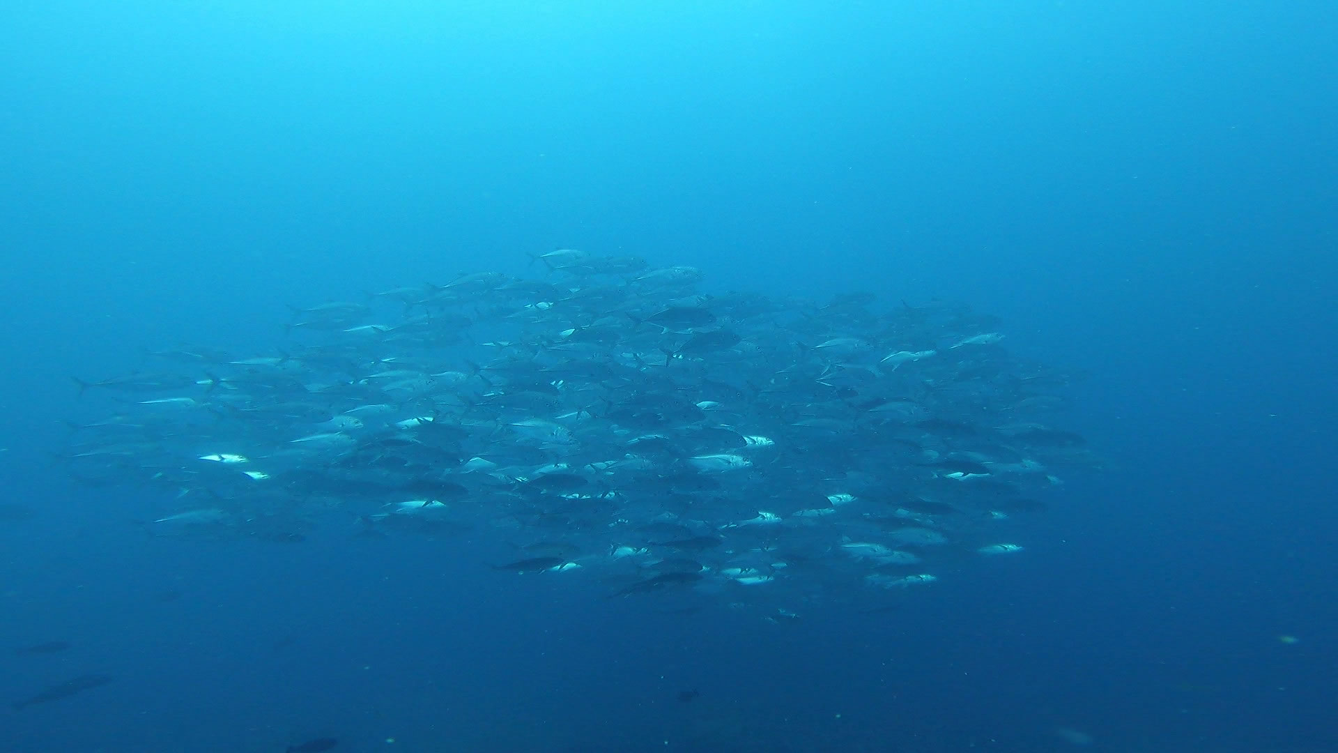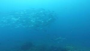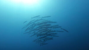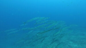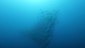 定番の!ギンガメアジの群れ・ブラックフィンバラクーの群れ