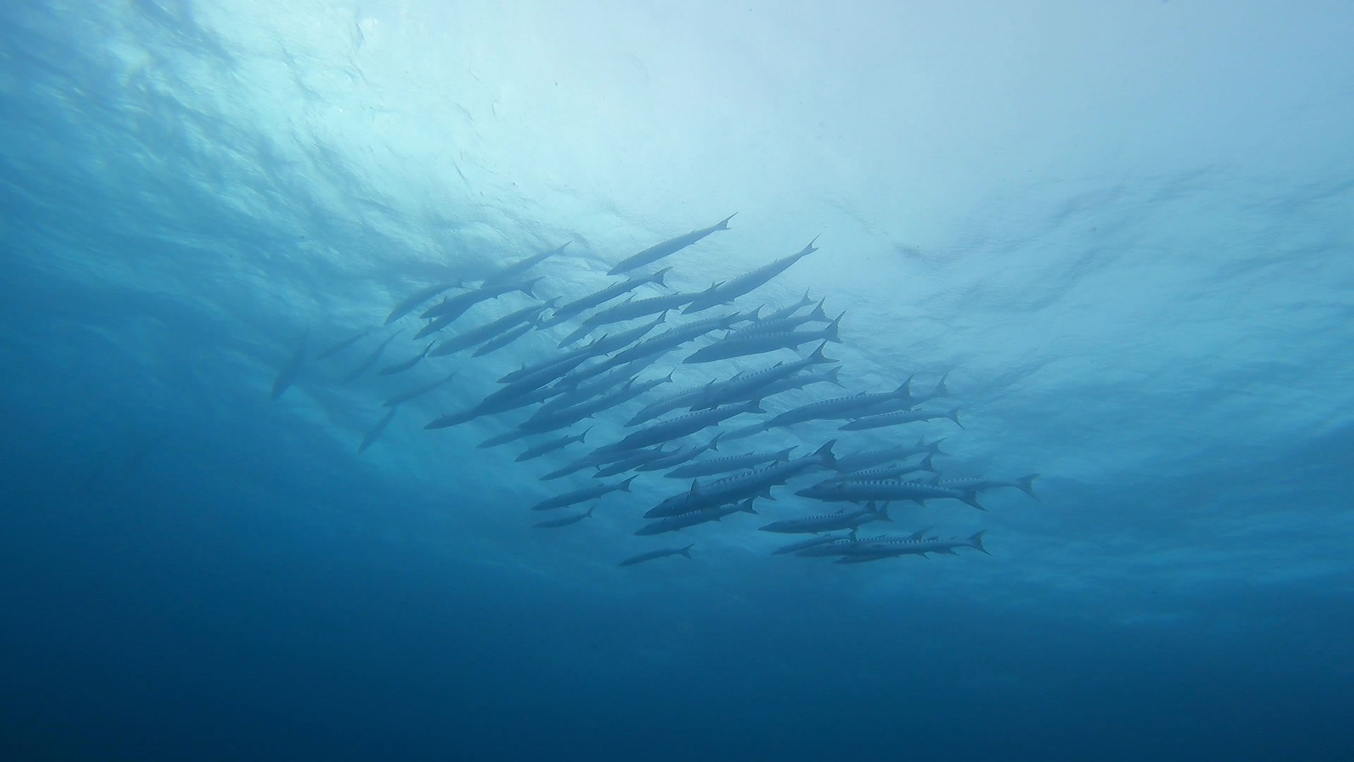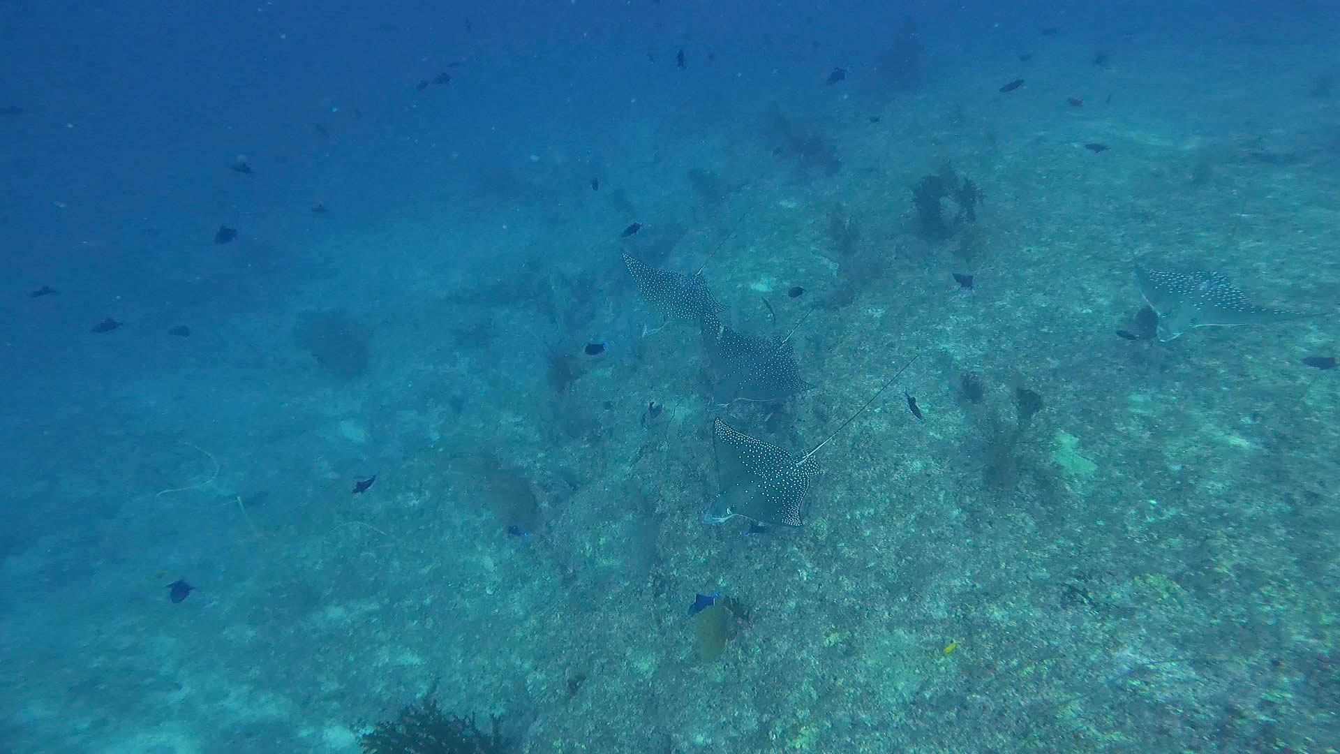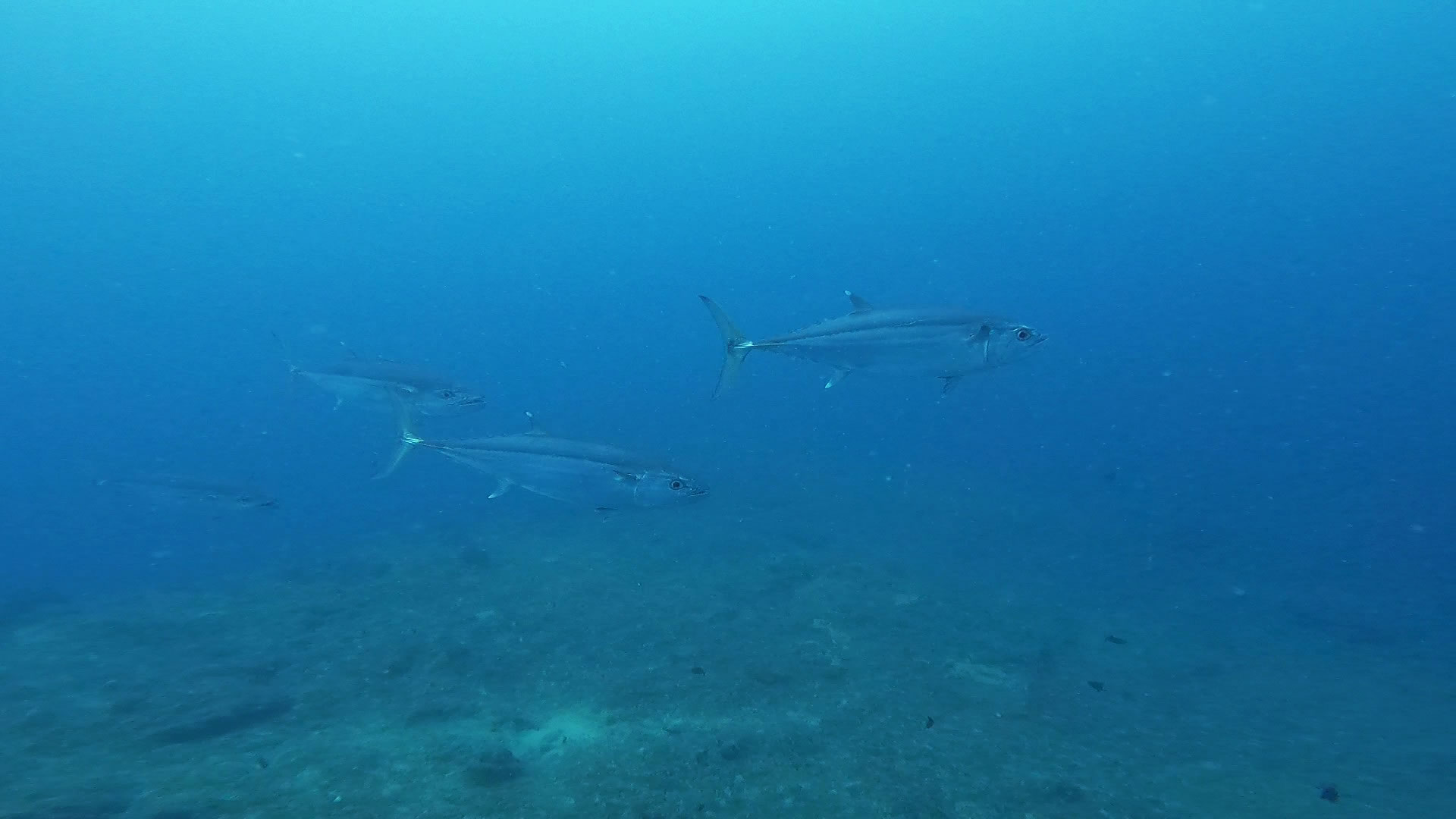 まずはイソマグロの群れから始まり、マダラトビエイは5匹!船の近くではブラックフィンバラクーダの群れ!