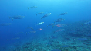しかし、ギンガメアジやブラックフィンバラクーダの群れは見ることが出来ず、