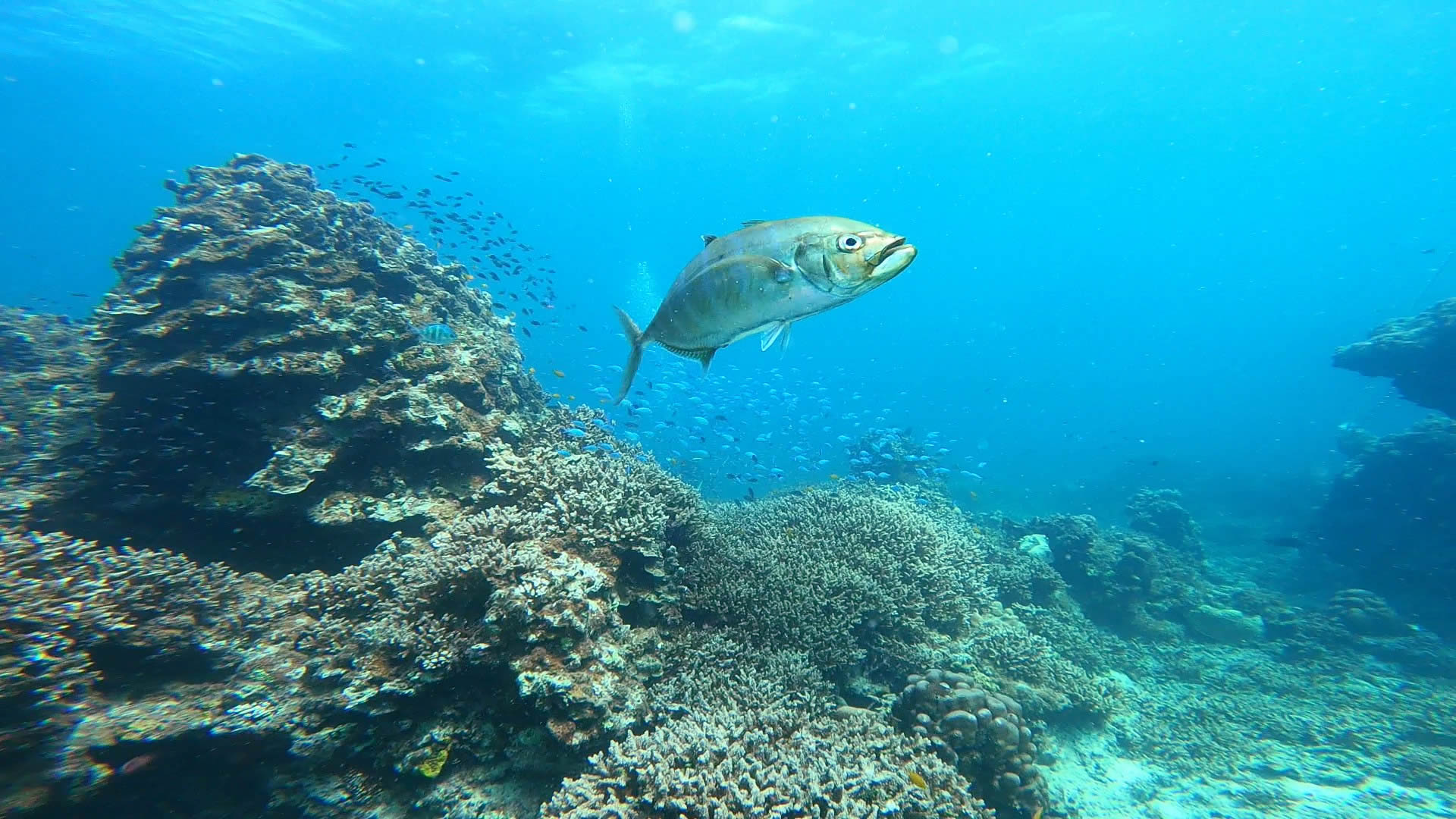 ギンガメアジの群れ・オオメカマスの群れ・コガネシマアジの群れなど見ることができました~!
